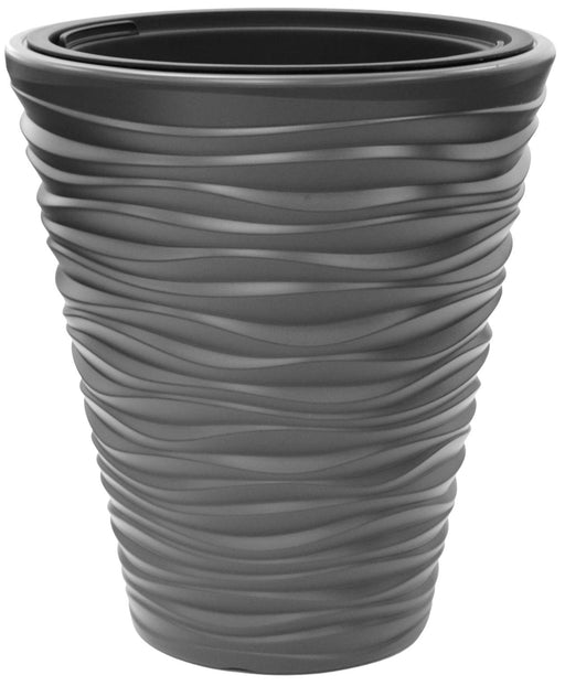 Planters Pride Wovo 48cm Round Plastic Flower Pot with Insert, Anthracite